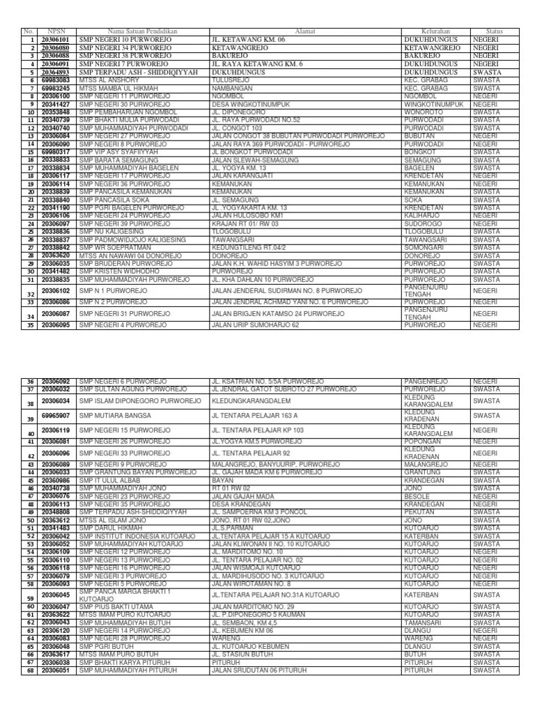 Pengumuman hasil ppdb smp n 1 tahun 2018 / 2019. Bekerjasama dengan pt telkom indonesia. Mardihusodo 3 kutoarjo (9,644.57 km) 54212 purworejo, jawa tengah, indonesia. (setiap hari pada pukul 08.00 s.d. Smp negeri 4 purworejo adalah salah satu sekolah yang setiap tahun mendapat antusias tinggi dari mohon maaf jika selama ppdb ini kami dalam melayani bapak ibu belum maksimal.